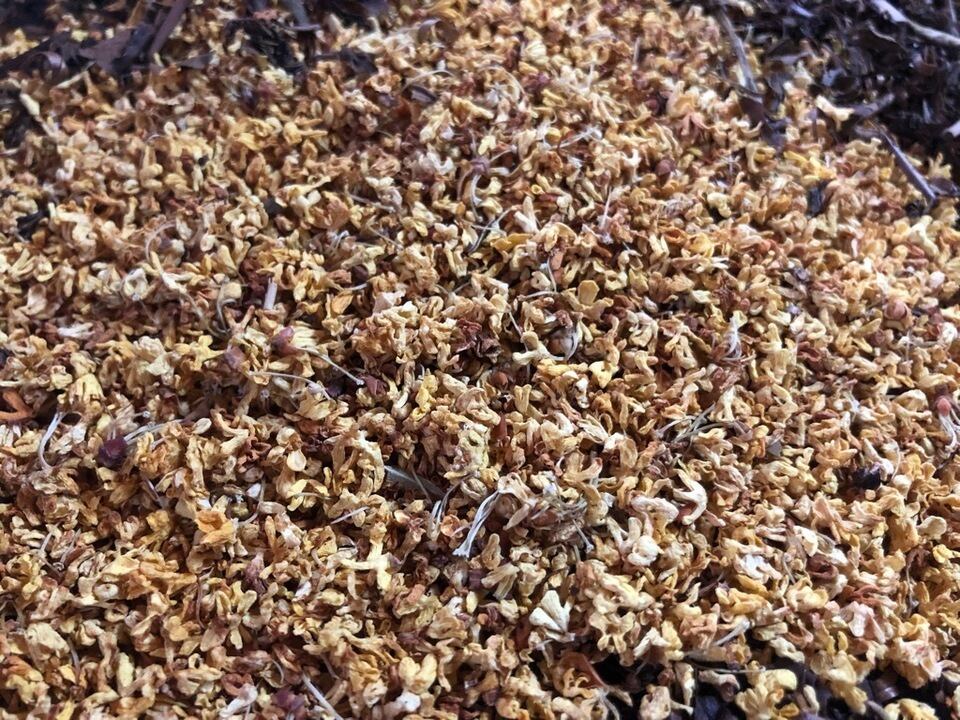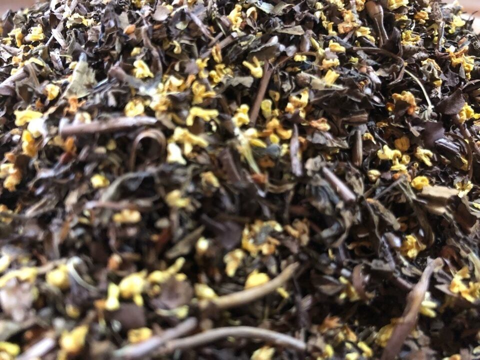 乾燥させた「金木犀の花」と「あまたま農園のほうじ茶」(無農薬・無肥料栽培)をバランスよくブレンドしました。
